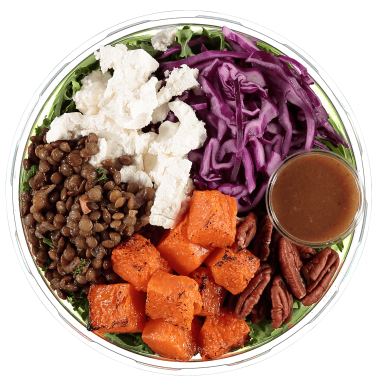 Kale, spinach, red cabbage, grilled pumpkin, lentils, toasted pecans,